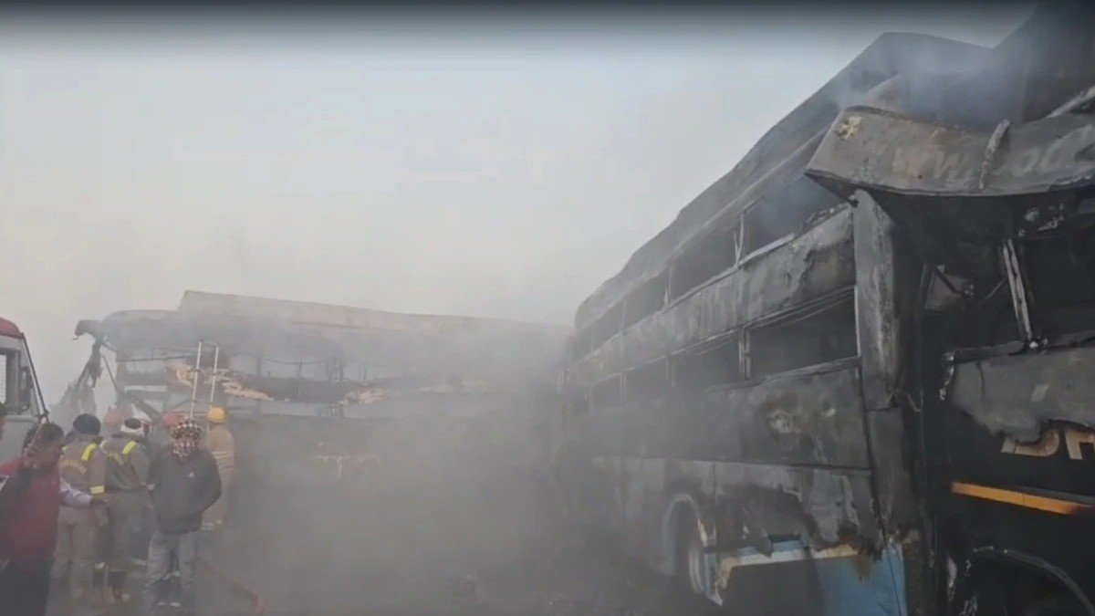 एक्सप्रेस-वे पर घना कोहरा था। माइलस्टोन 127 पर अचानक स्लीपर बस के सामने धुंध आ गई। इसके चलते ड्राइवर ने ब्रेक मारकर स्पीड धीमी की। इसके बाद पीछे चल रही 6 बसें और 4 कारें आकर भिड़ गईं। टक्कर से एसी बस में आग लग गई। लोगों को भागने तक का मौका नहीं मिला।